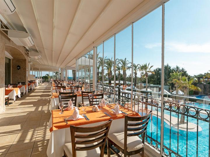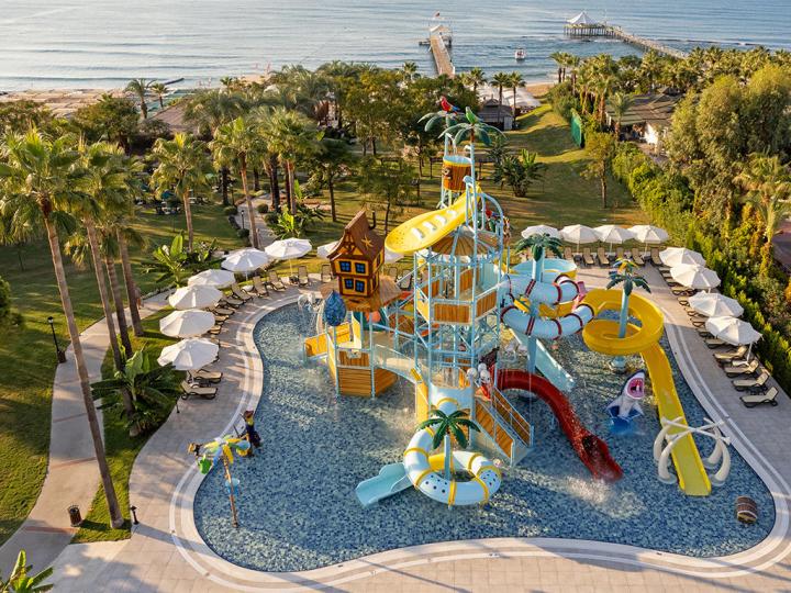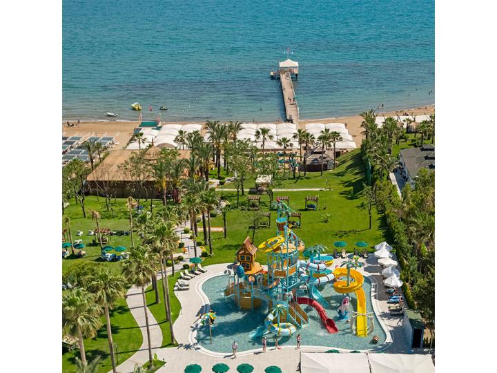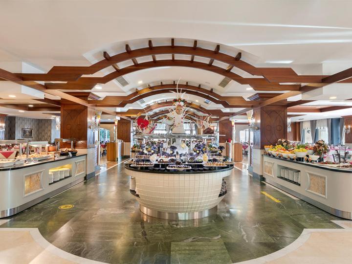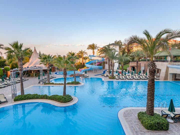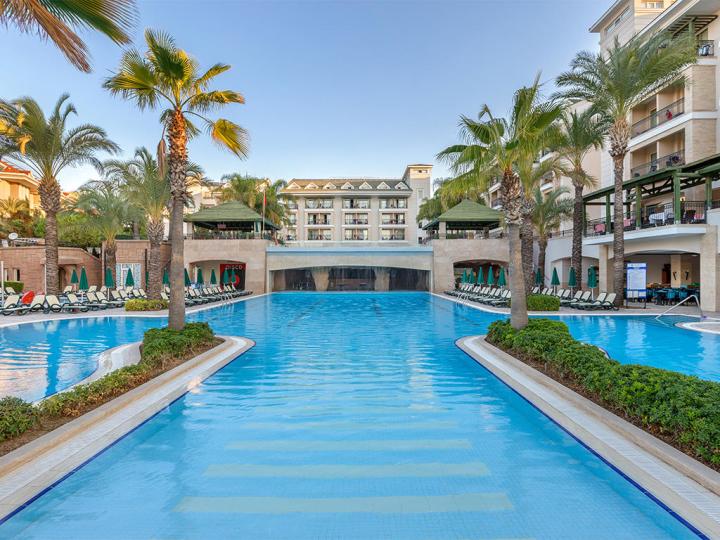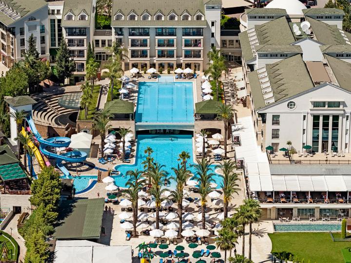 Hotel sadrži: glavni restoran, 3 a la carte restorana (uz rezervaciju cca 8 eur), snack restoran, 5 barova, 2 otvorena bazena od kojih je jedan sa 4 tobogana, dečiji bazen i zatvoreni bazen sa đakuzijem, animacije, diskoteka, dečiji klub podeljen u 3 starosne kategorije, bioskop, wi-fi u lobiju i većini soba, boćanje, pikado, stoni tenis, bilijar, kuglanje, tenis, odbojka, skvoš, fitness, aqua gym, aerobik, mini fudbal, sportovi na vodi, SPA centar (sauna, parno kupatilo, hamam, zatvoreni bazen, masaže, nega lica i tela).
