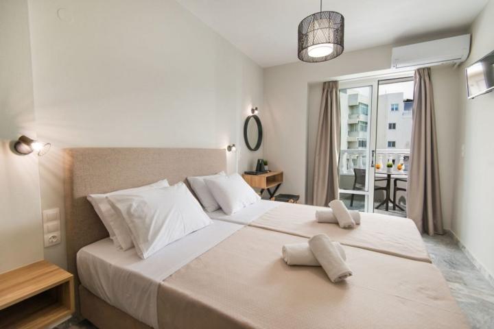 U gradu Retimnu, 10m od duče gradske peščane plaže. Aerodrom je udaljen 65km. Svi sadržaju nalaze se u neposrednoj blizini.