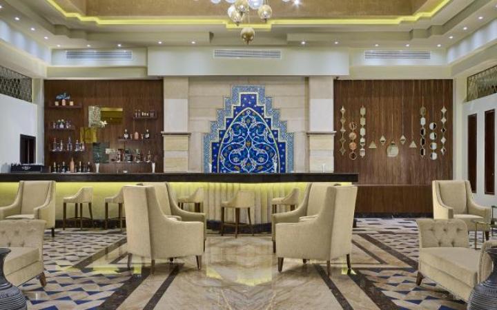 Lokacija:Ovaj luksuzni hotel , radjen u marokanskom-andaluzijskom stilu ,nalazi se na jednoj od najegzotičnijih plaža u Marsa Alamu, na oko 15 km od centra El Kuseir i oko 45 km od aerodroma Marsa Alam.Peščana plaža sa 220 m dugačkim molom za direktan pristup otvorenom moru, nalazi se ispred samog hotela.Ležaljke, suncobrani i peškiri za plažu se ne naplaćuju . Sadržaj: Gostima hotela su na raspolaganju recepcija, lobi bar, bar pored bazena , bar na plaži, glavni restoran, italijanski a la carte restoran (jednom po boravku besplatno), besplatni WiFi u javnim prostorijama hotela, otvoreni bazen, dečji bazen, zatvoreni bazen, grejani bazen sa jacuzzijem, vodeni park sa 2 tobogana i dečiji bazen sa toboganima, SPA centar (sauna, hidromasažni bazen, masaže, parno i tursko kupatilo, frizer - sve uz naplatu),.