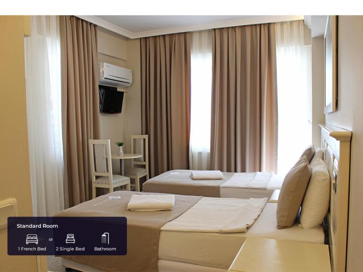 Sve sobe imaju: kupatilo sa tuš kabinom, fen, split klimu, direktnu telefonsku liniju, mini bar (uz doplatu), set za čaj i kafu pri dolasku, sef (uz doplatu), laminat pod, SAT TV i muzičke kanale, balkon.
