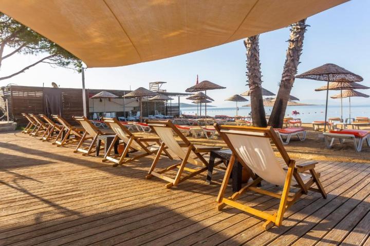 Nalayi se na sopstvenoj plaži, ležaljke na plaži i pored bazena su besplatne.