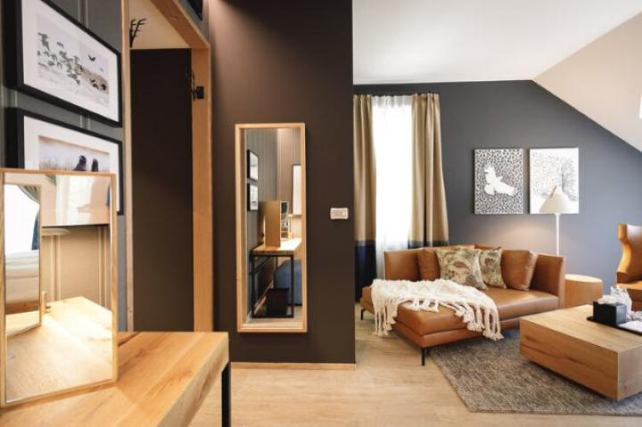 Town Classics, 19 m2 , krevet King-size 180 x 200 cm, pogled: basta i grad River Melodies, 20-22 m2 , krevet King-size 180 x 200 cm, pogled na reku Chestnut Embrace , 32 m2 , krevet King-size 180 x 200 cm, pogled na Julijske Alpe i Botanicki park The Royal Hug 40 m2, krevet King-size 180 x 200 cm, pogled na Julijske Alpe i reku